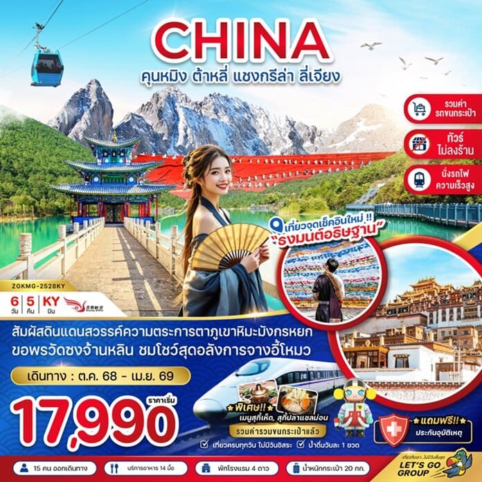 ภูเขาหิมะมังกรหยก – โชว์จางอี้โหมว – ทะเลสาบไป๋สุยเหอ – นั่งรถไฟความเร็วสูง – เมืองคุนหมิง