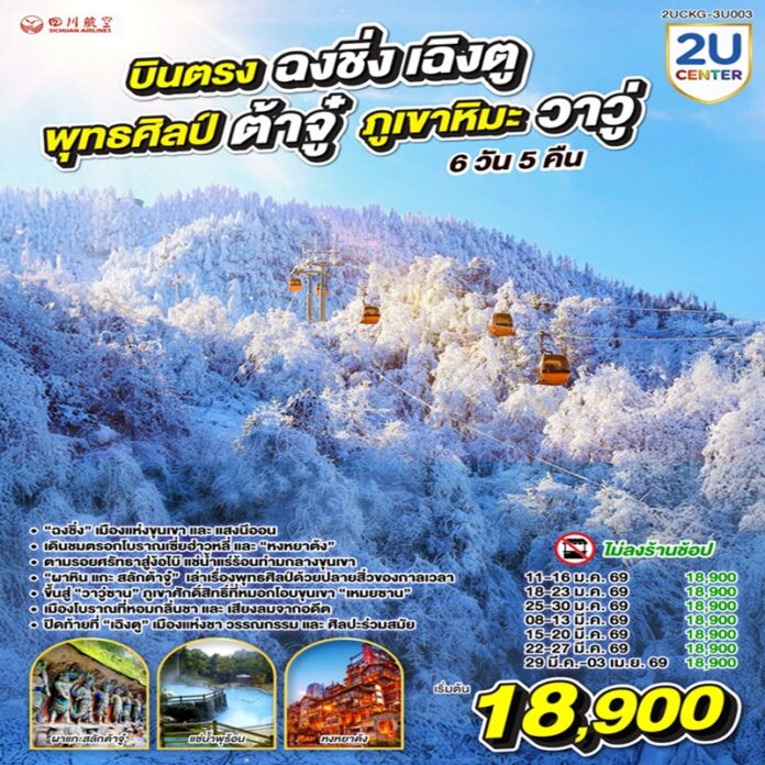 ทัวร์จีน ฉงชิ่ง เฉิงตู พุทธศิลป์ต้าจู๋ ภูเขาหิมะวาวู่ซาน 6 วัน 5 คืน
