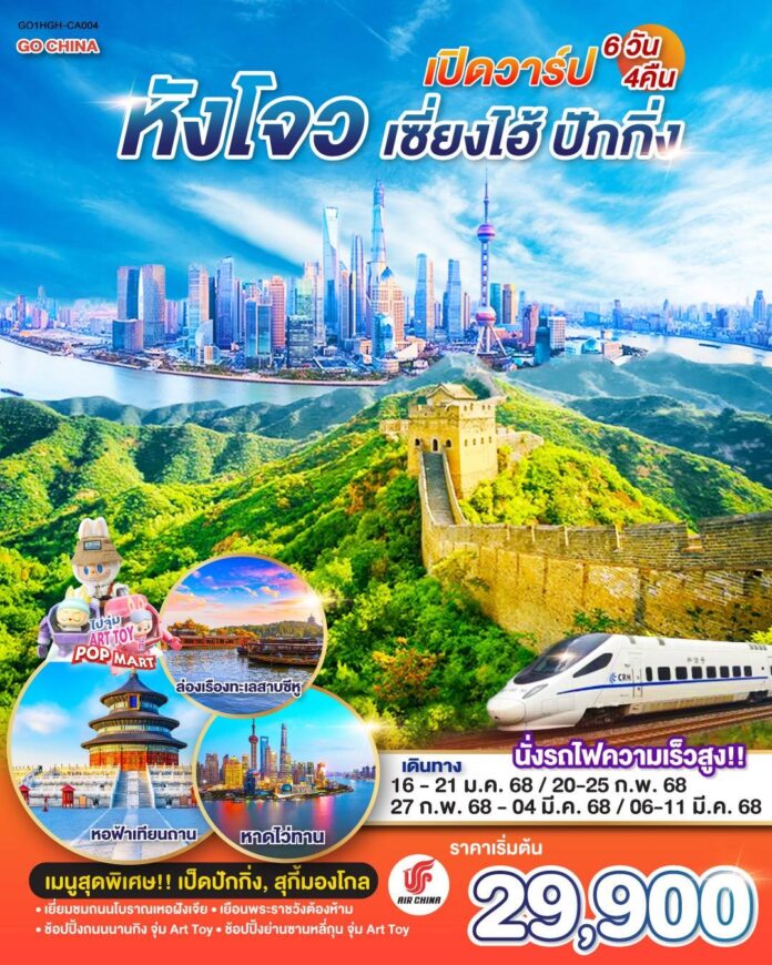 ทัวร์จีน หังโจว เซี่ยงไฮ้ ปักกิ่ง 6 วัน 4 คืน
