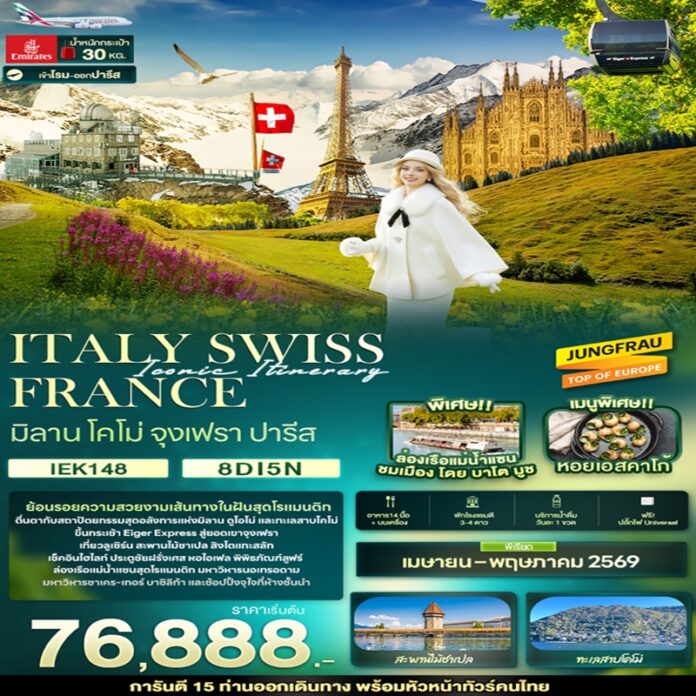 ทัวร์อิตาลี สวิตเซอร์แลนด์ ฝรั่งเศส 8 วัน 5 คืน