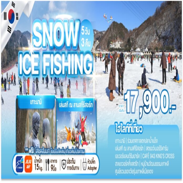 เกาะนามิ | ร่วมเทศกาลตกปลาน้ำแข็งที่หนึ่งปีมีเพียงครั้งเดียว จัดขึ้นระหว่างวันที่ 10 ม.ค. – 01 ก.พ. 2026 เท่านั้น (ไม่รวมค่าใช้จ่ายต่าง ๆ ที่เกี่ยวข้องกับการตกปลา) เล่นสกี ณ ลานสกีรีสอร์ท (ไม่รวมค่าใช้จ่ายต่าง ๆ ที่ลานสกี)