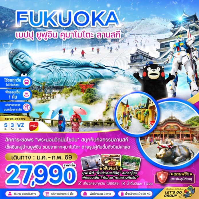 ลานสกีคูจู - คุมาโมโตะ - ปราสาทคุมาโมโตะ - ถนนคามิโทริ - ฟุกุโอกะ - ย่านเทนจิน