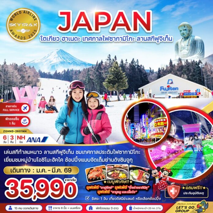 ทัวร์ญี่ปุ่น โตเกียว ฮาเนดะ เทศกาลไฟซากามิโกะ ลานสกีฟูจิเท็น 6 วัน 3 คืน