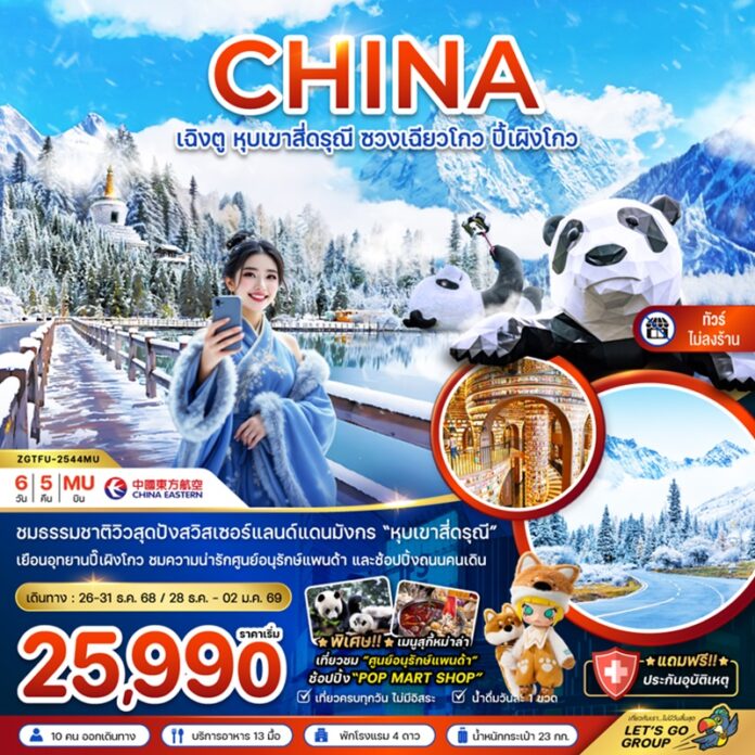 ทัวร์จีน เฉิงตู หุบเขาสี่ดรุณี ซวงเฉียวโกว ปี้เผิงโกว 6 วัน 5 คืน