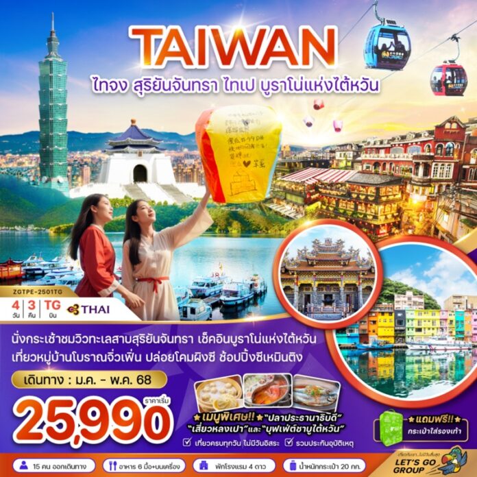 สนามบินสุวรรณภูมิ - สนามบินเถาหยวน สาธารณรัฐจีน (ไต้หวัน) – เมืองไทจง – โรงละครแห่งชาติไถจง หมู่บ้านสายรุ้ง - เฝิงเจี่ยไนท์มาร์เก็ต